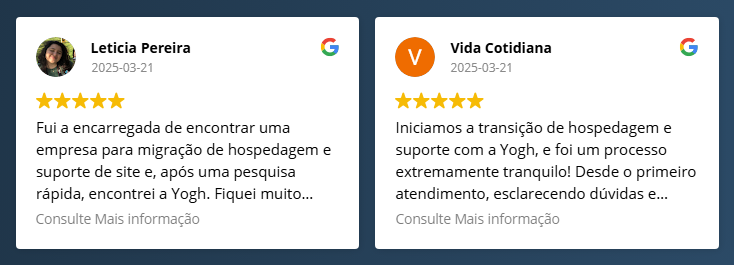 Avaliar a Yogh no Google é mostrar para outros que existe um jeito mais seguro e inteligente de cuidar do WordPress e manter-se sempre bem informado.
